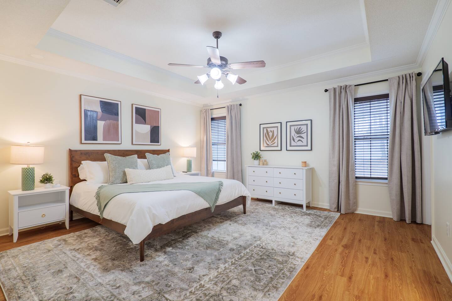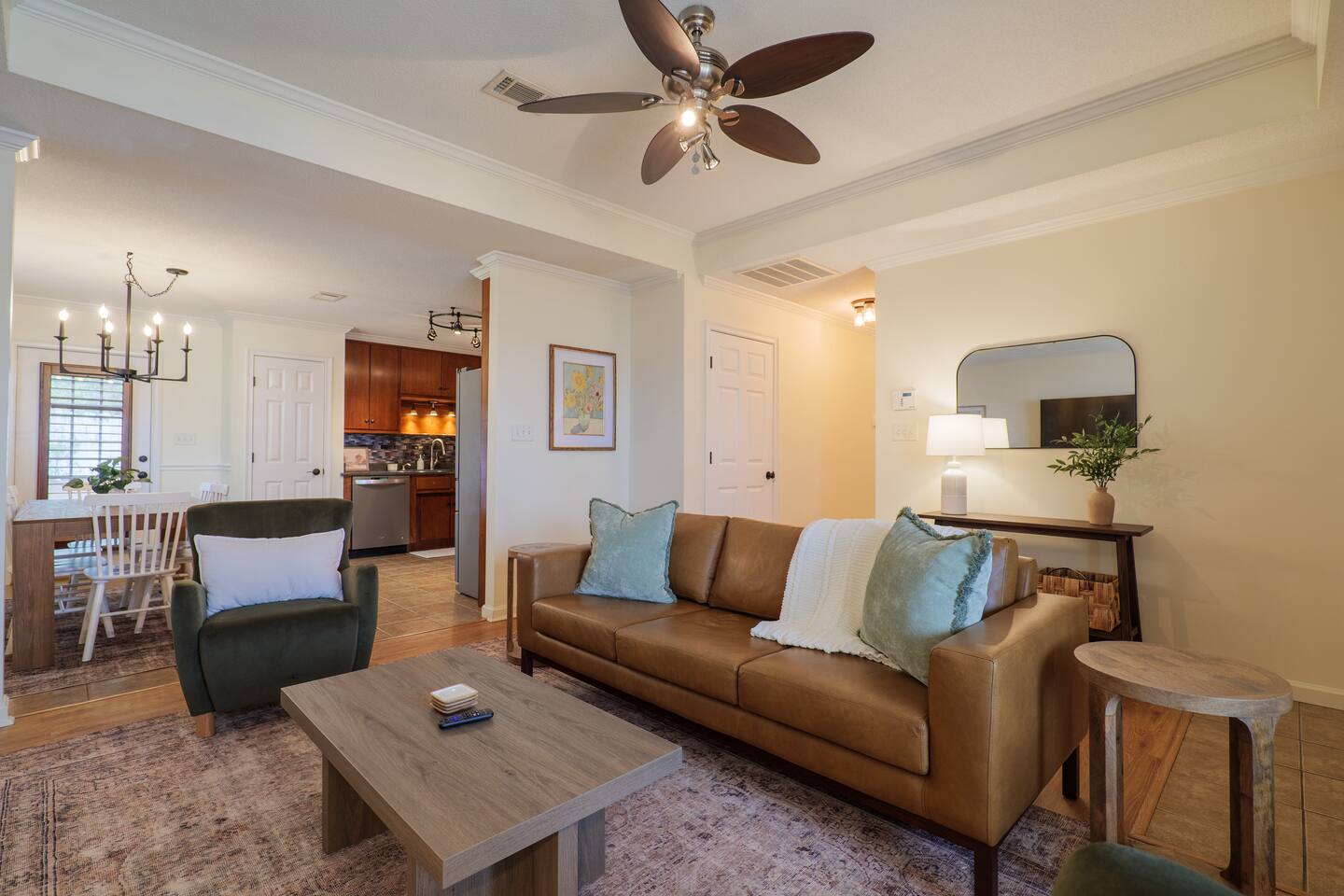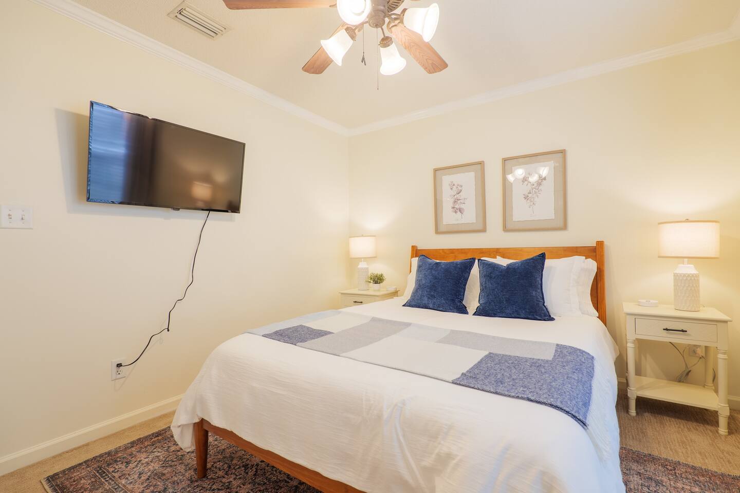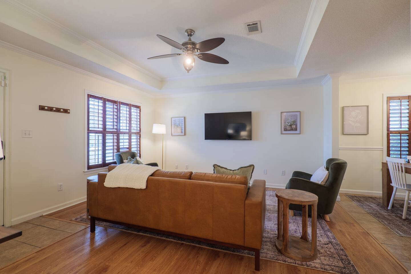 Make yourself at home in this cozy and well-equipped getaway—perfect for families, friends, or travelers passing through Valdosta. Highlights: -3 bedrooms and 2 full bathrooms -Comfortable sleeping: 1 king bed, 2 queen beds -4 smart TVs located throughout the home -Fully equipped kitchen for home-cooked meals -Pet-friendly with a fully fenced backyard for your pets’ safety -Just minutes from I-75 for easy access and travel -Living and dining areas designed for relaxing together -Washer and dryer for added convenience