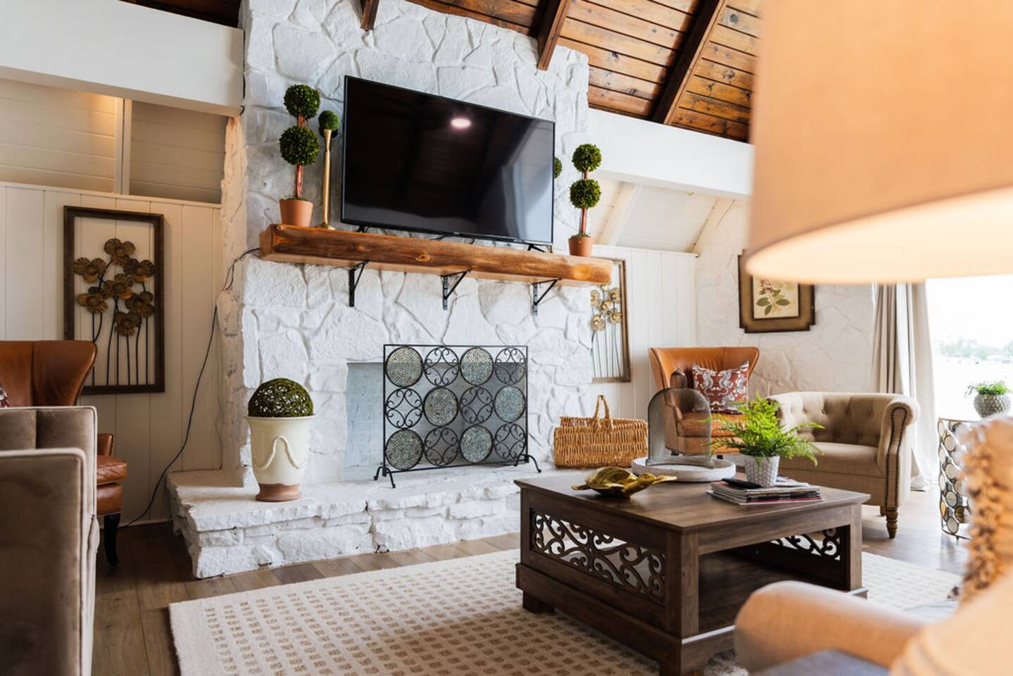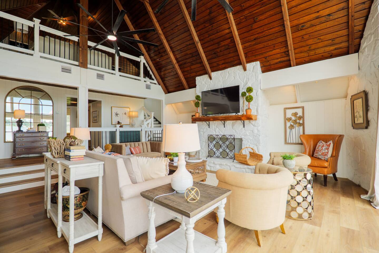 Enjoy a relaxing lakefront escape with two homes that sleep up to 16 guests, featuring 7 beds and 3 full bathrooms. Guests have access to the pool, dock, wraparound deck, and the beautiful waters of Long Pond, a water-skiing lake. Two homes 7 total beds: 2 kings, 3 queens, 1 full & 1 queen pullout 3 full bathrooms across both spaces Lake access for swimming, boating & skiing Private pool with seating and dining area Spacious wraparound deck for lounging & sunsets