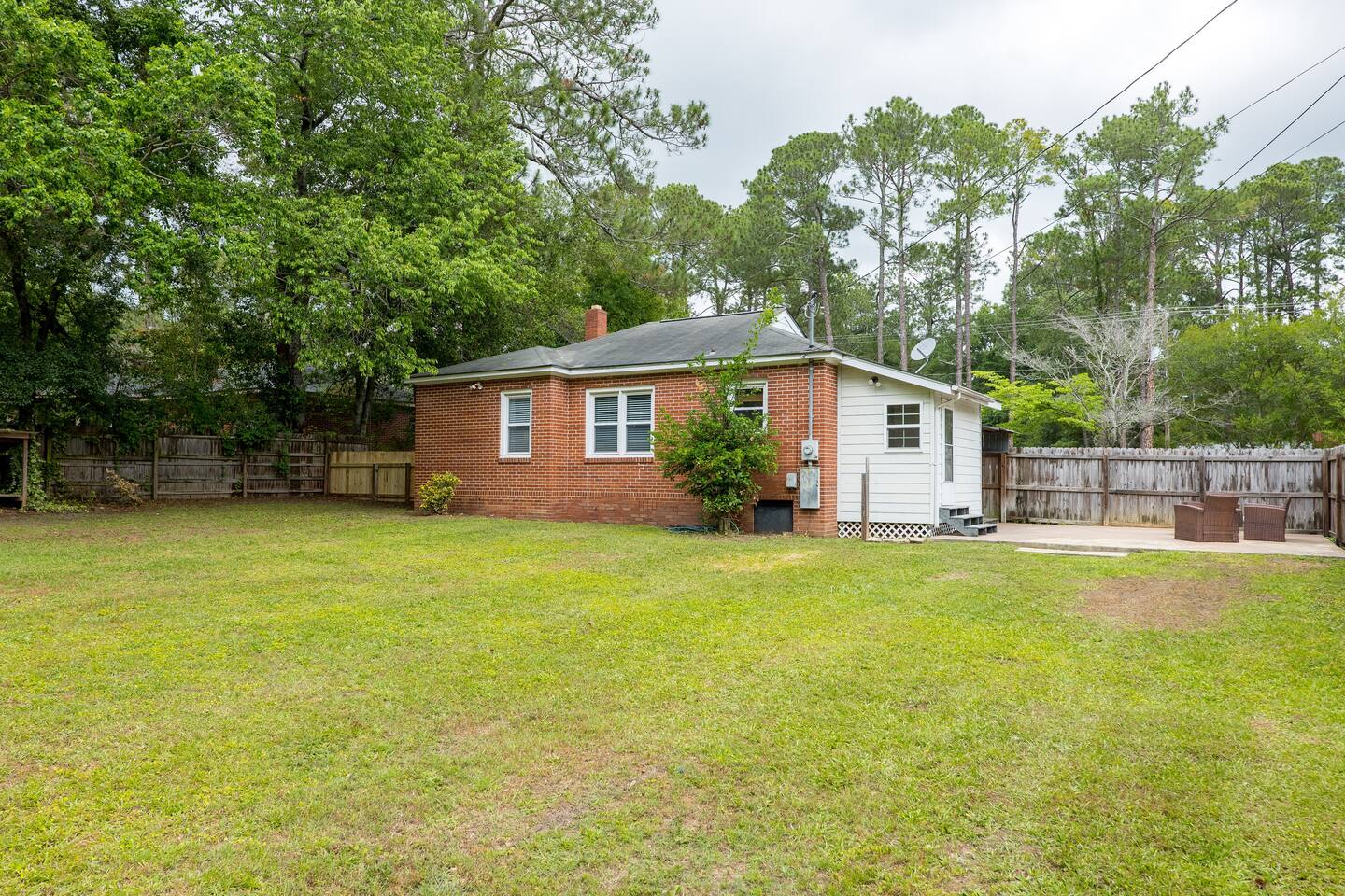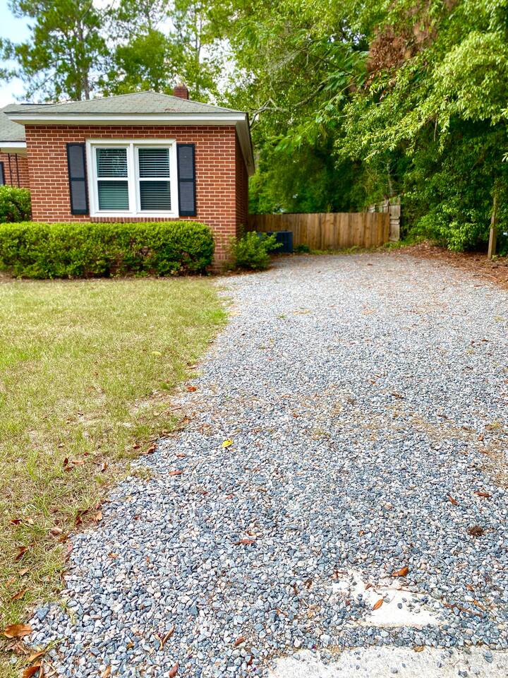 Welcome to your charming vacation home in Tifton, Georgia! This cozy two-bedroom, one-bathroom house is the perfect spot for a romantic getaway or a small family vacation, as well as for longer-term stays for those looking to enjoy the city for an extended period of time. As you step inside, you'll find a warm and inviting living room with comfortable seating and a flat-screen TV. The adjacent dining area is perfect for meals or game nights, with a table that seats four. The fully equipped kitchen has everything you need to whip up your favorite meals, including a refrigerator, oven, stove, microwave, and coffee maker. Both bedrooms feature comfortable king-sized beds and plenty of storage space for your belongings. Newly added flat screen TVs to both bedrooms with swivel mounts to watch tv in the comfort of your bed! The bathroom has a shower/tub combo and is stocked with plenty of fluffy towels and basic toiletries. Outside, you'll find a fenced-in backyard with a patio area and plenty of seating for outdoor relaxation. The backyard is perfect for your furry friends to run around in, and we welcome pets with prior approval. Located in a quiet and friendly neighborhood, this house is just a short drive from all the best shopping, dining, and entertainment that Tifton has to offer. Whether you're here for a romantic getaway, a small family vacation, or a longer-term stay, this cozy vacation home is the perfect place to call home during your visit.