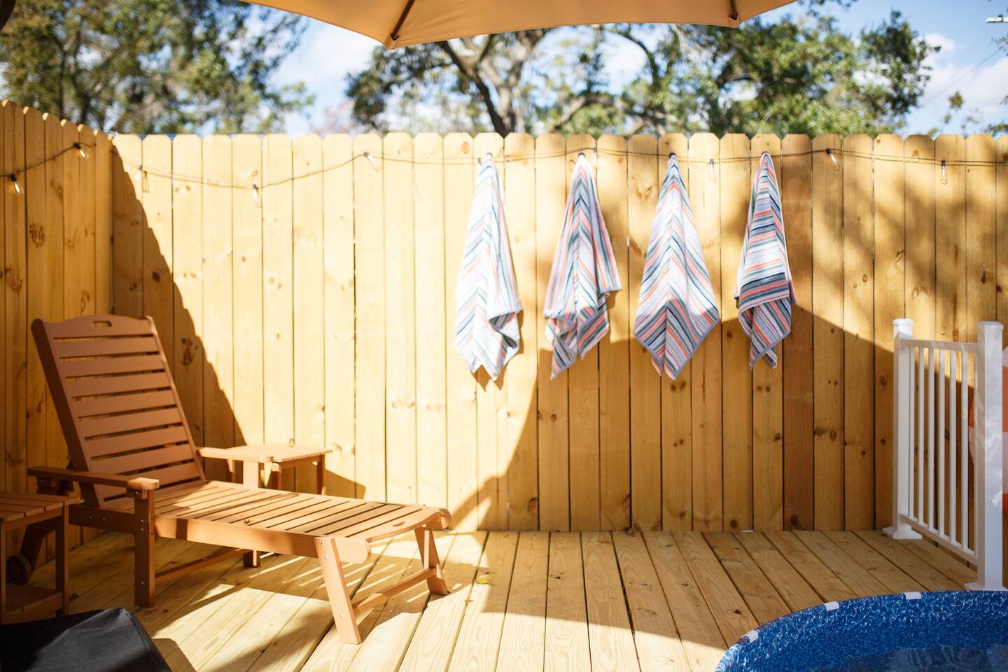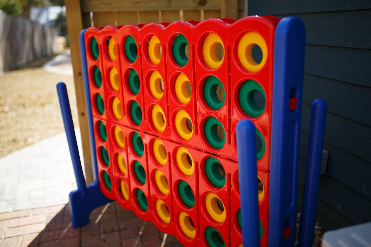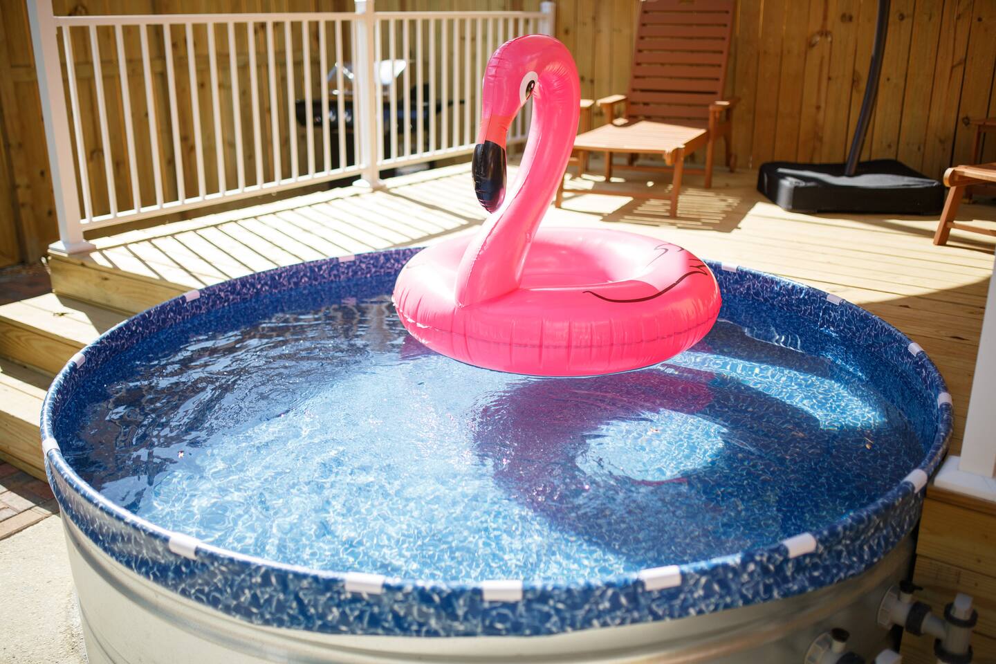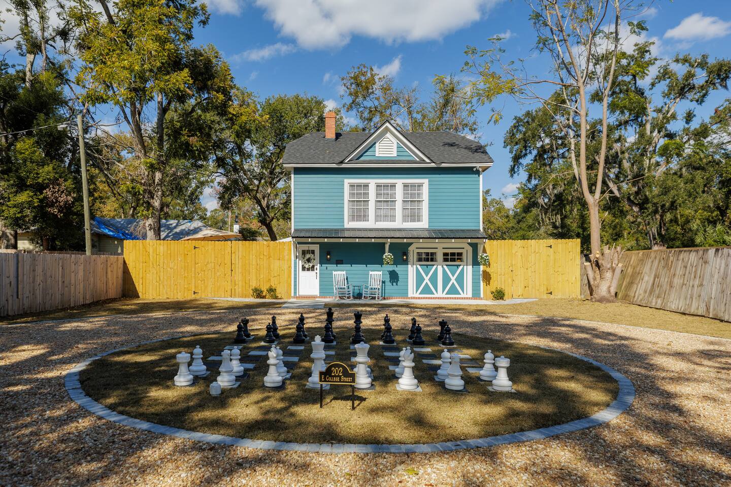 • Sleeps 5 — king bed in primary bedroom, queen bed in second bedroom, couch in living room *Please note guests must climb stairs to access bedrooms. This home is historic, so the stairs may be difficult to climb for young children and those with disabilities. Both bedrooms are located on the second floor. • Upstairs full bathroom with fully tiled tub & shower combo. The water pressure will melt your stress away! • Downstairs half bathroom for convenience • Cowboy pool for warm-weather lounging • Life-size chess, Connect 4, & cornhole • Outdoor dining area, sun loungers & propane grill • Fully equipped kitchen with cooking essentials • Smart TVs & high-speed Wi-Fi • Washer & dryer for guest use- located in the upstairs bedroom • Private outdoor setting • Walk to VSU — minutes from campus, dining & downtown
