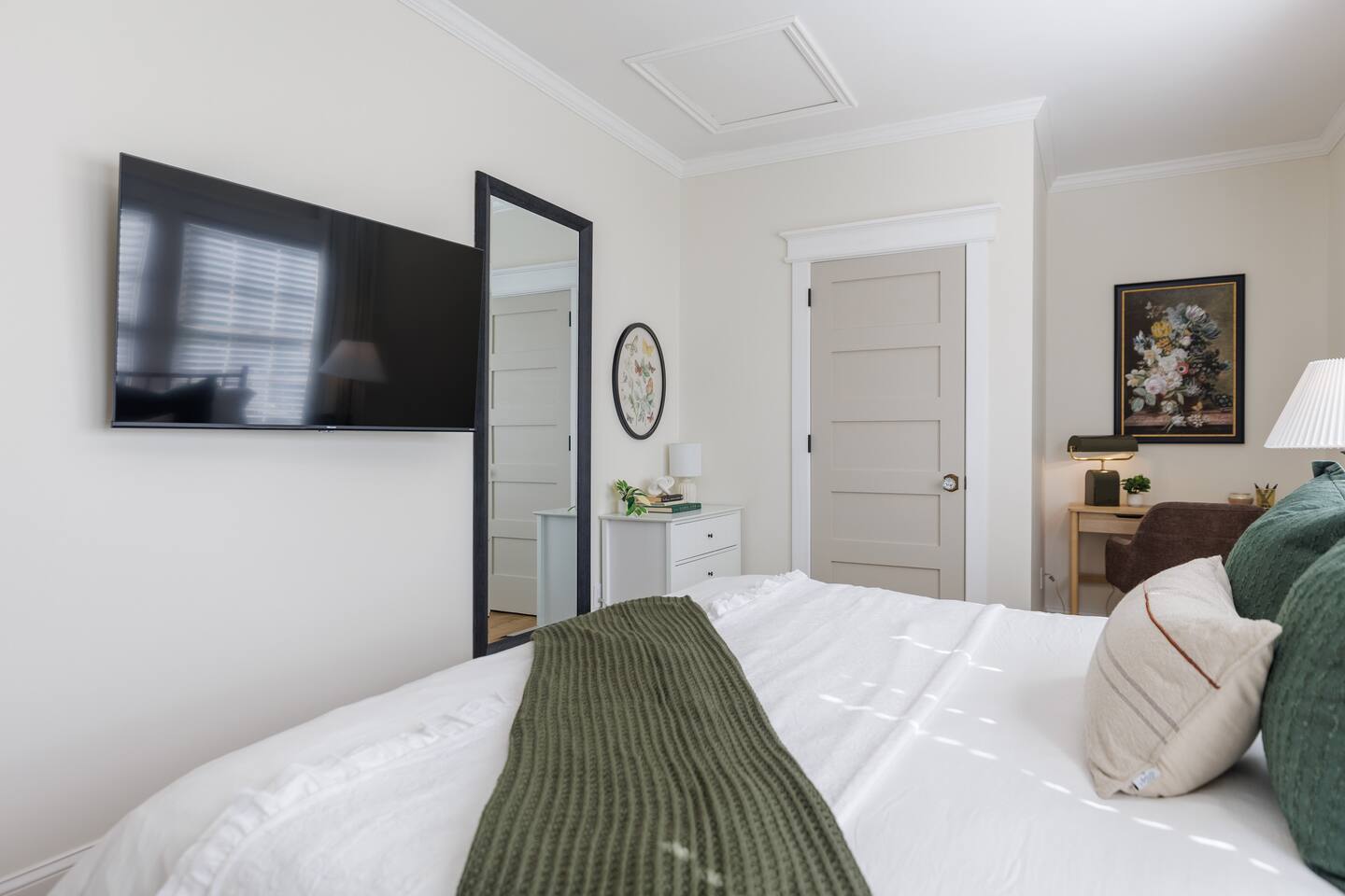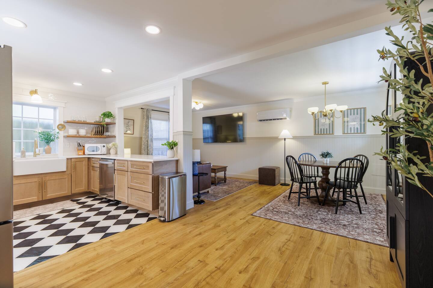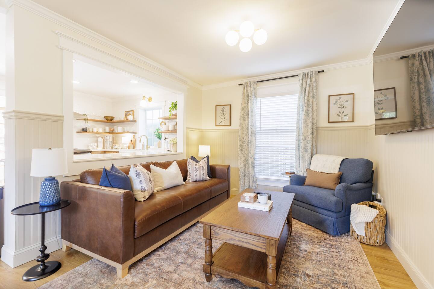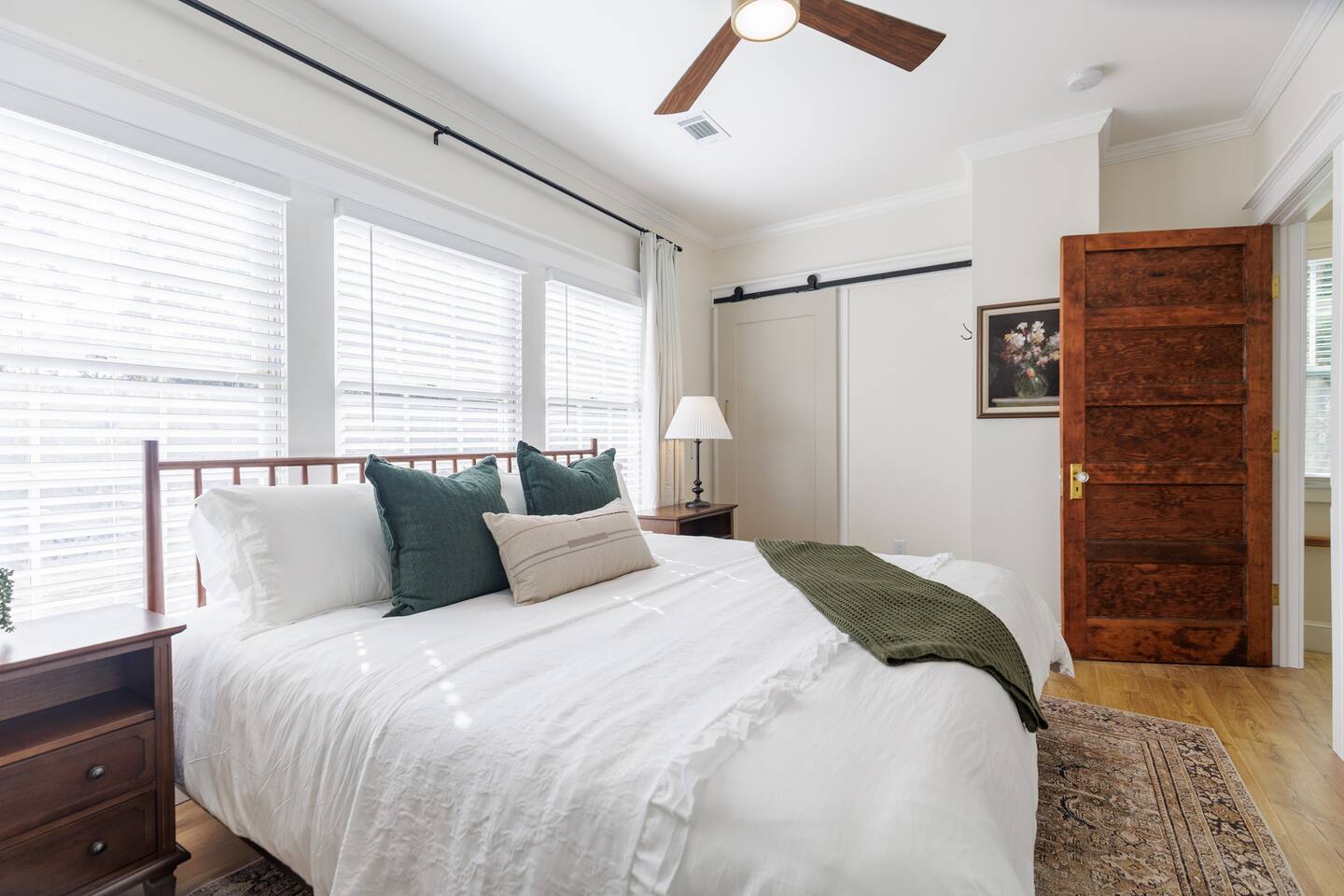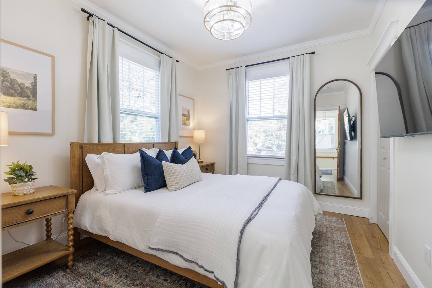 Built in 1924, this home once served as the carriage house for the Presbyterian parsonage, sheltering horse-drawn carriages and standing witness to a century of change. Nearly lost to demolition, it was rescued and carefully restored with respect for its story and original craftsmanship. Historic details remain—like the bedroom doors brought back to natural wood—blended with warm, thoughtful design that preserves spirit of the past. We look forward to sharing this piece of history with you.