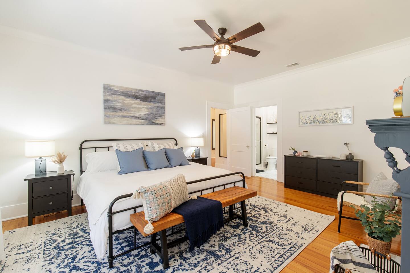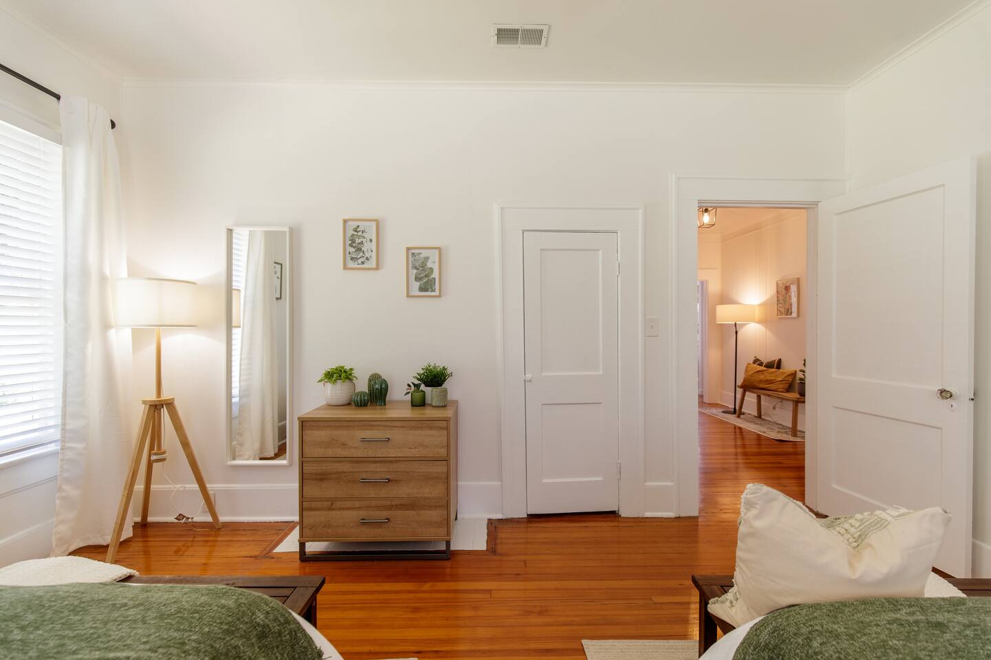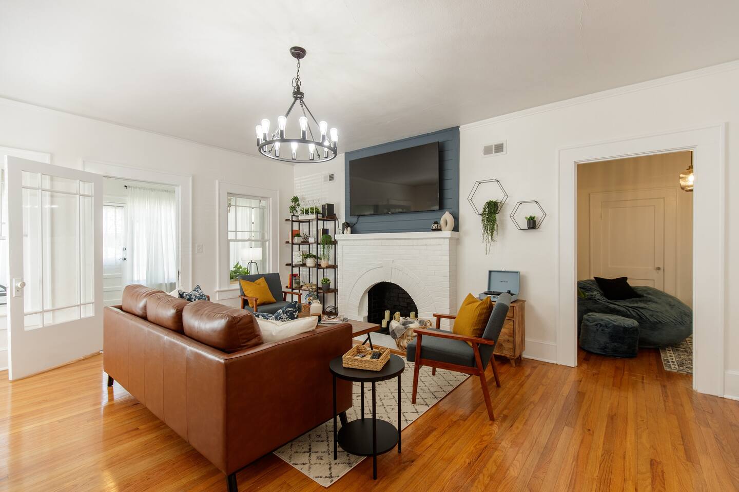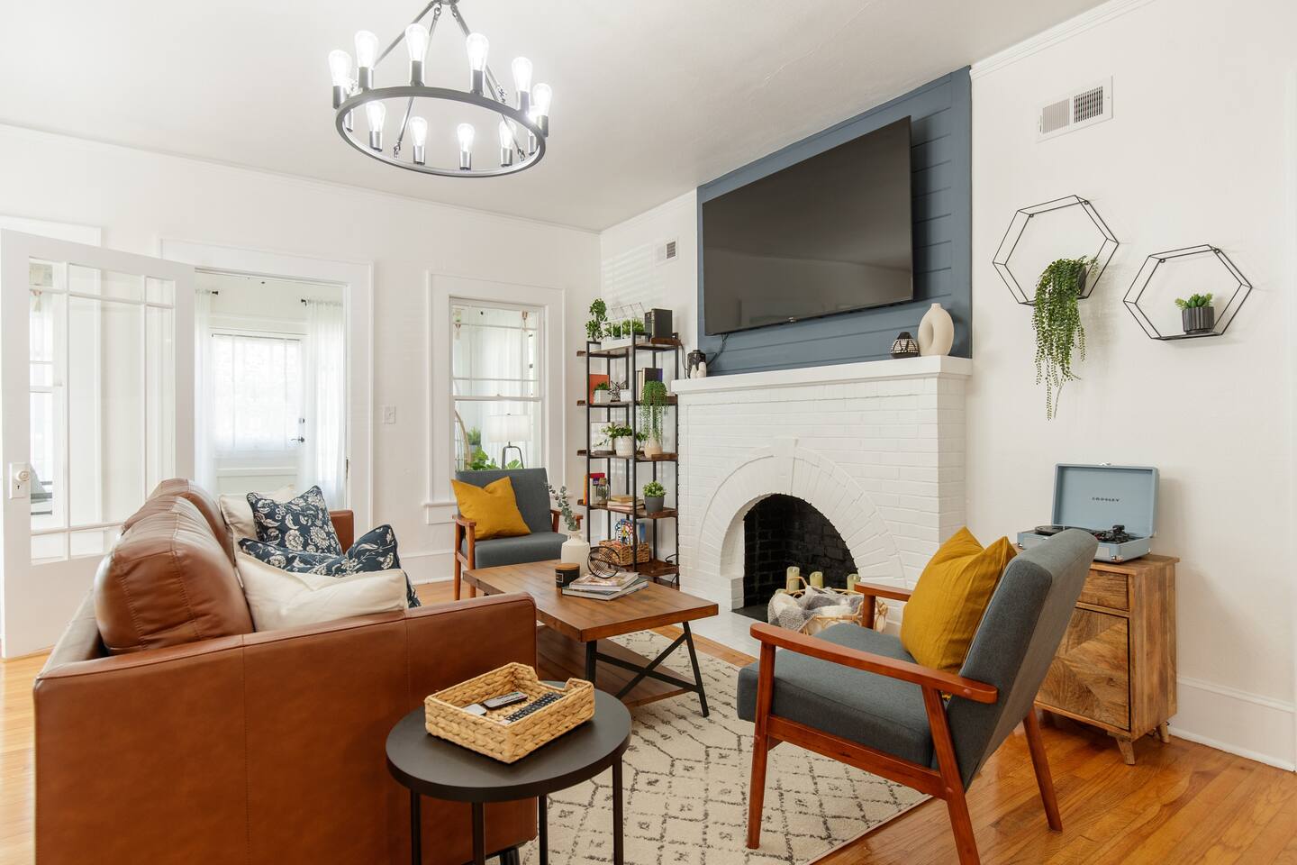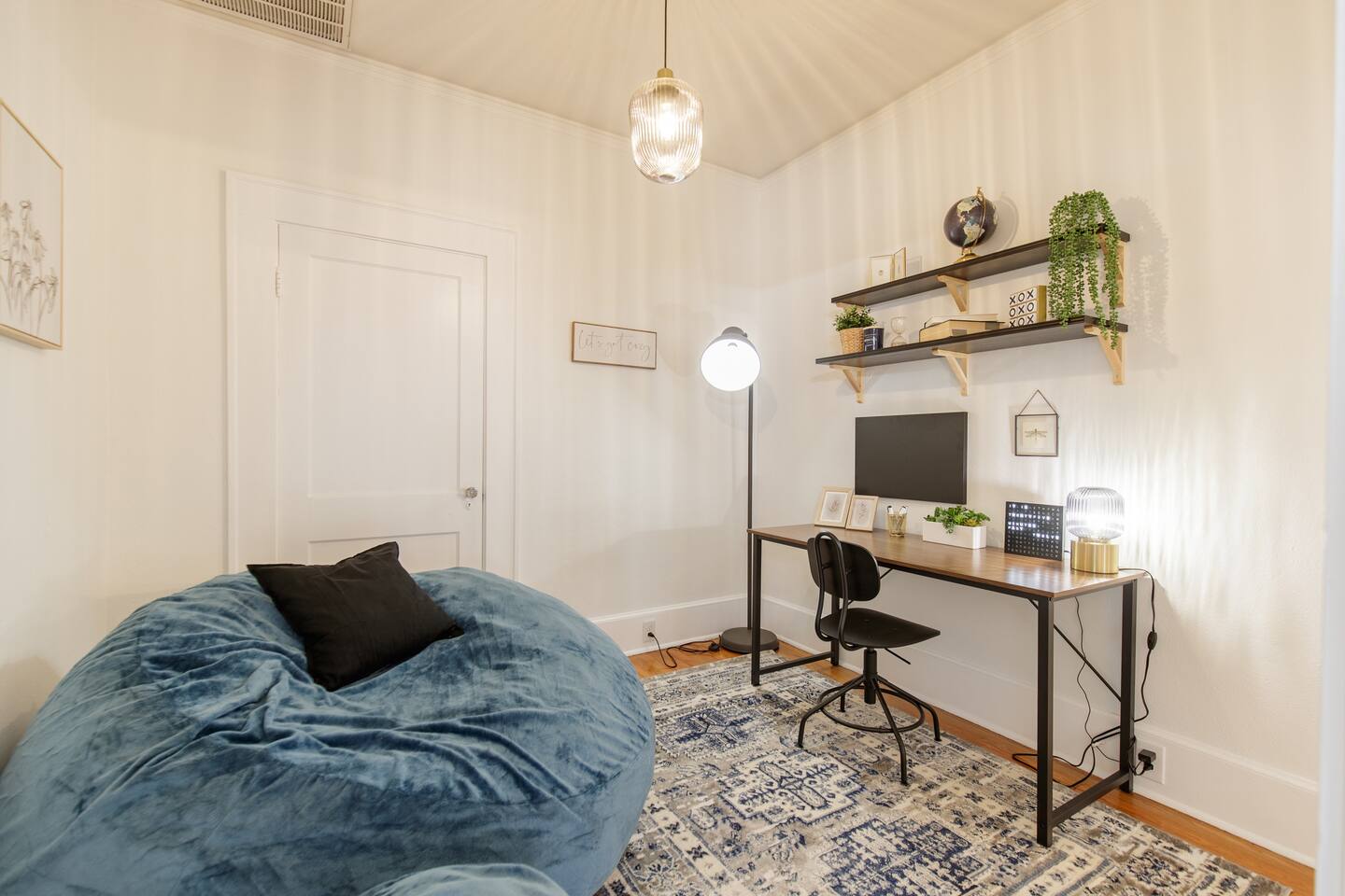 This renovated 100-year-old cottage has been carefully updated while preserving the warmth and charm that make it special. 🛏 Sleeping & Layout -King primary suite with private bath -Bedroom with two queen beds -Additional queen bedroom -Twin daybed in sunroom -Ideal for families, wedding guests & road trip groups -Most comfortable for 6–8 guests (max 10) 🛋 Living Spaces -Spacious open living & dining area -70” 4K TV for movie nights -Separate office/lounge with desk + oversized beanbag -Light-filled sunroom with hanging egg chair -Multiple cozy nooks for reading or relaxing 🍳 Kitchen & Dining -Fully stocked kitchen for home-cooked meals -Restored vintage cast iron sink -Breakfast nook with French press & drip coffee maker -Coffee, sugar & creamer provided -Dining table seating for 8 🌿 Outdoor Living -Front porch swing & rocking chairs -Fenced backyard (great for kids) -Patio dining area with umbrella -Propane grill for cookouts -Quiet historic neighborhood 📍 Location -3 minutes to VSU -3 minutes to SGMC -9 minutes to Publix -10 minutes to I-75 -19 minutes to Wild Adventures
