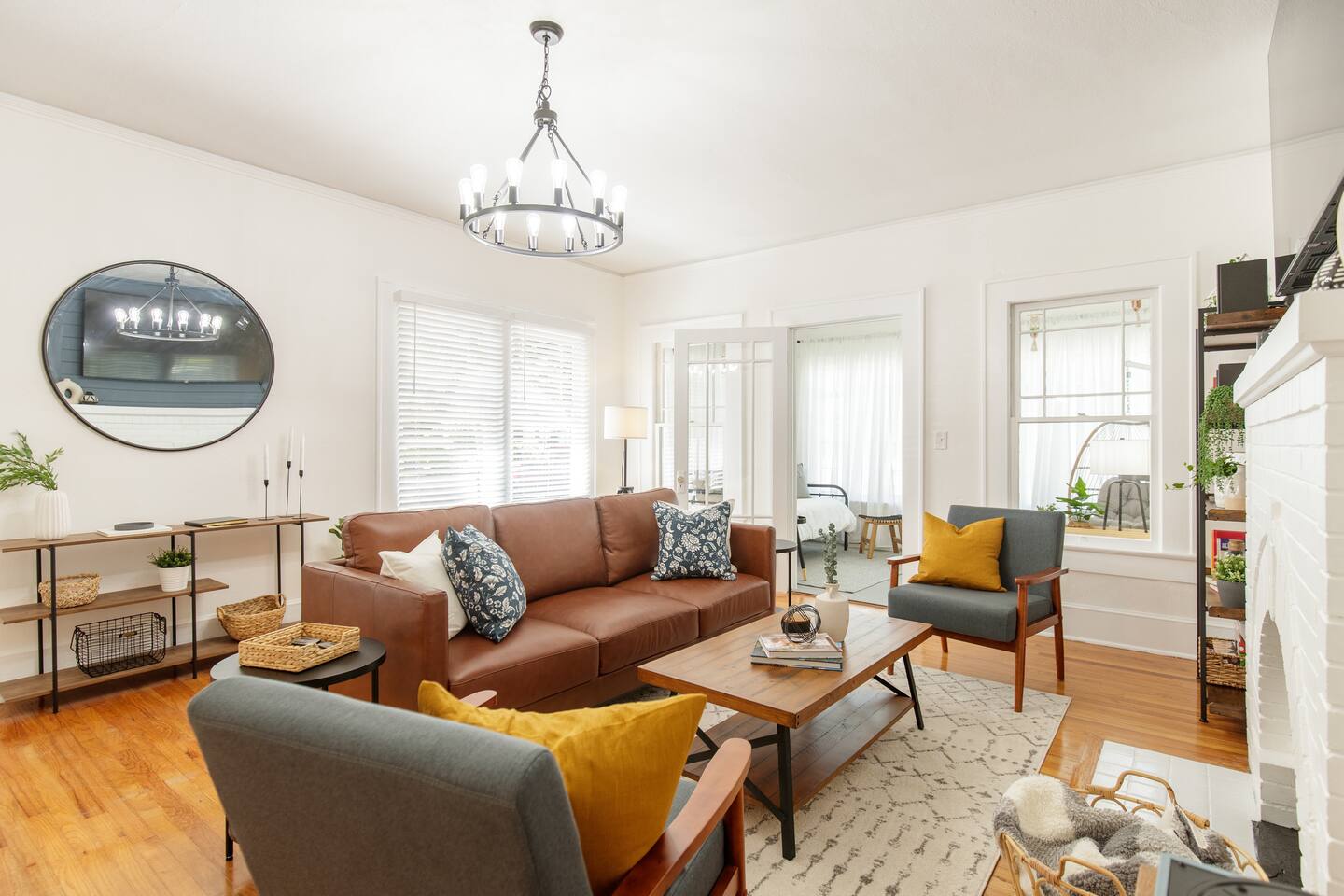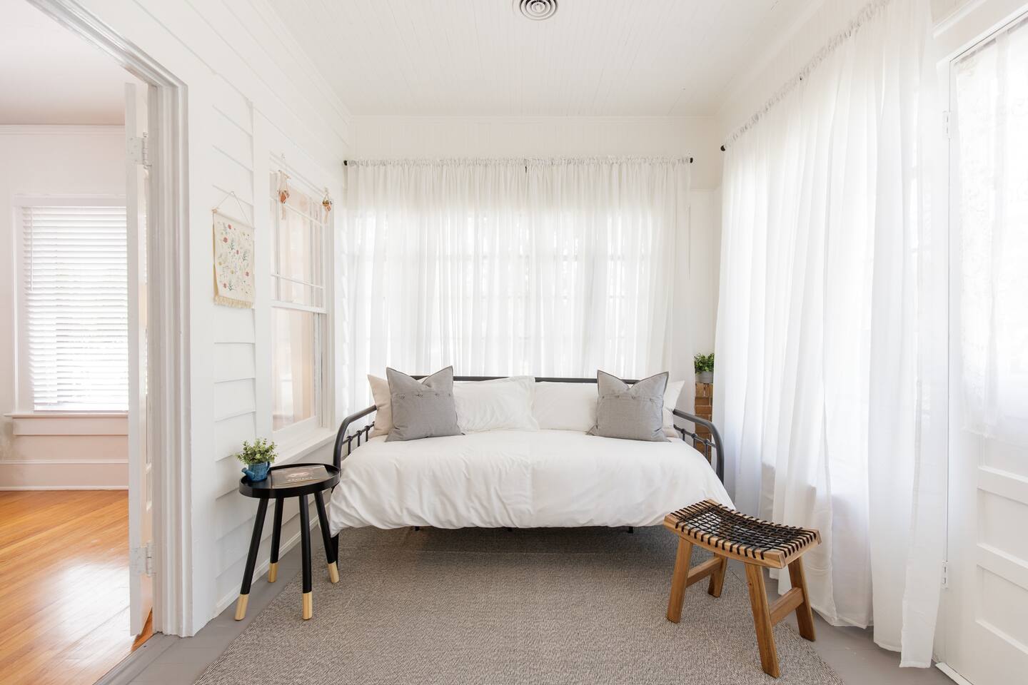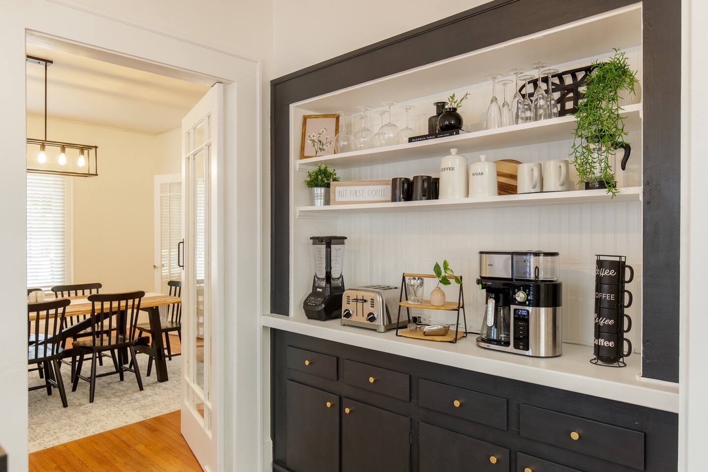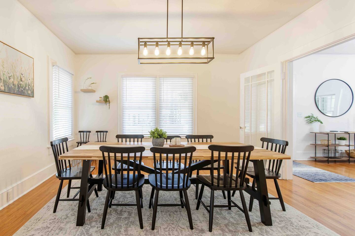 This renovated 100-year-old cottage has been carefully updated while preserving the warmth and charm that make it special. 🛏 Sleeping & Layout -King primary suite with private bath -Bedroom with two queen beds -Additional queen bedroom -Twin daybed in sunroom -Ideal for families, wedding guests & road trip groups -Most comfortable for 6–8 guests (max 10) 🛋 Living Spaces -Spacious open living & dining area -70” 4K TV for movie nights -Separate office/lounge with desk + oversized beanbag -Light-filled sunroom with hanging egg chair -Multiple cozy nooks for reading or relaxing 🍳 Kitchen & Dining -Fully stocked kitchen for home-cooked meals -Restored vintage cast iron sink -Breakfast nook with French press & drip coffee maker -Coffee, sugar & creamer provided -Dining table seating for 8 🌿 Outdoor Living -Front porch swing & rocking chairs -Fenced backyard (great for kids) -Patio dining area with umbrella -Propane grill for cookouts -Quiet historic neighborhood 📍 Location -3 minutes to VSU -3 minutes to SGMC -9 minutes to Publix -10 minutes to I-75 -19 minutes to Wild Adventures