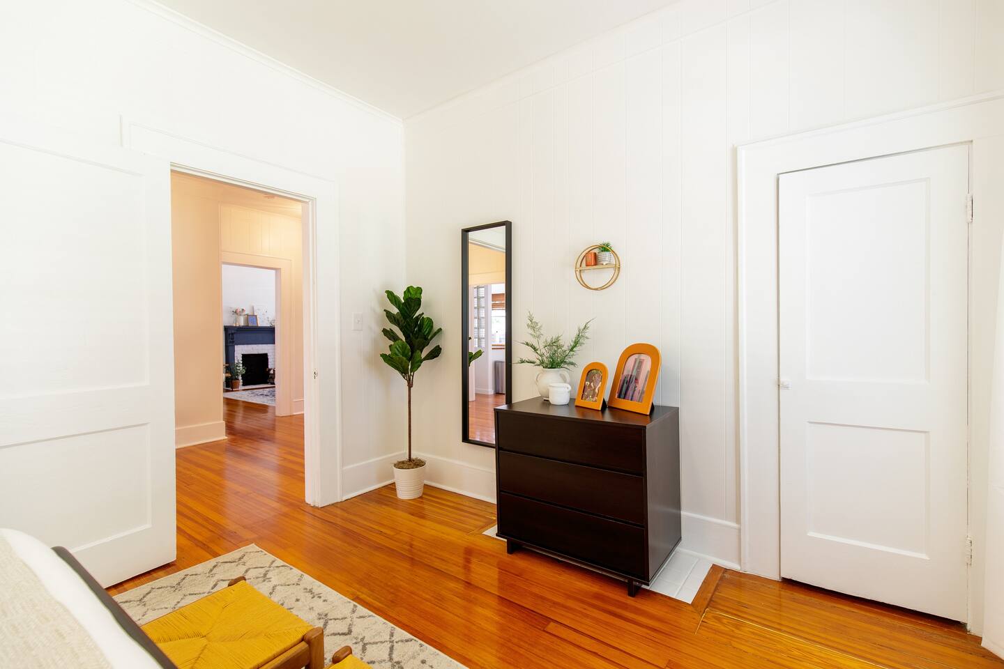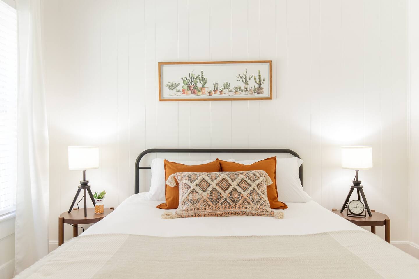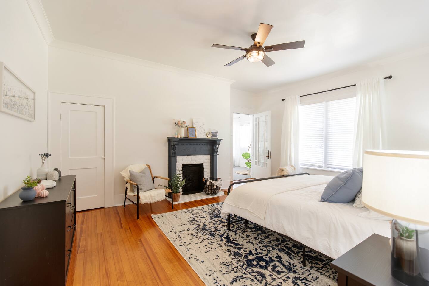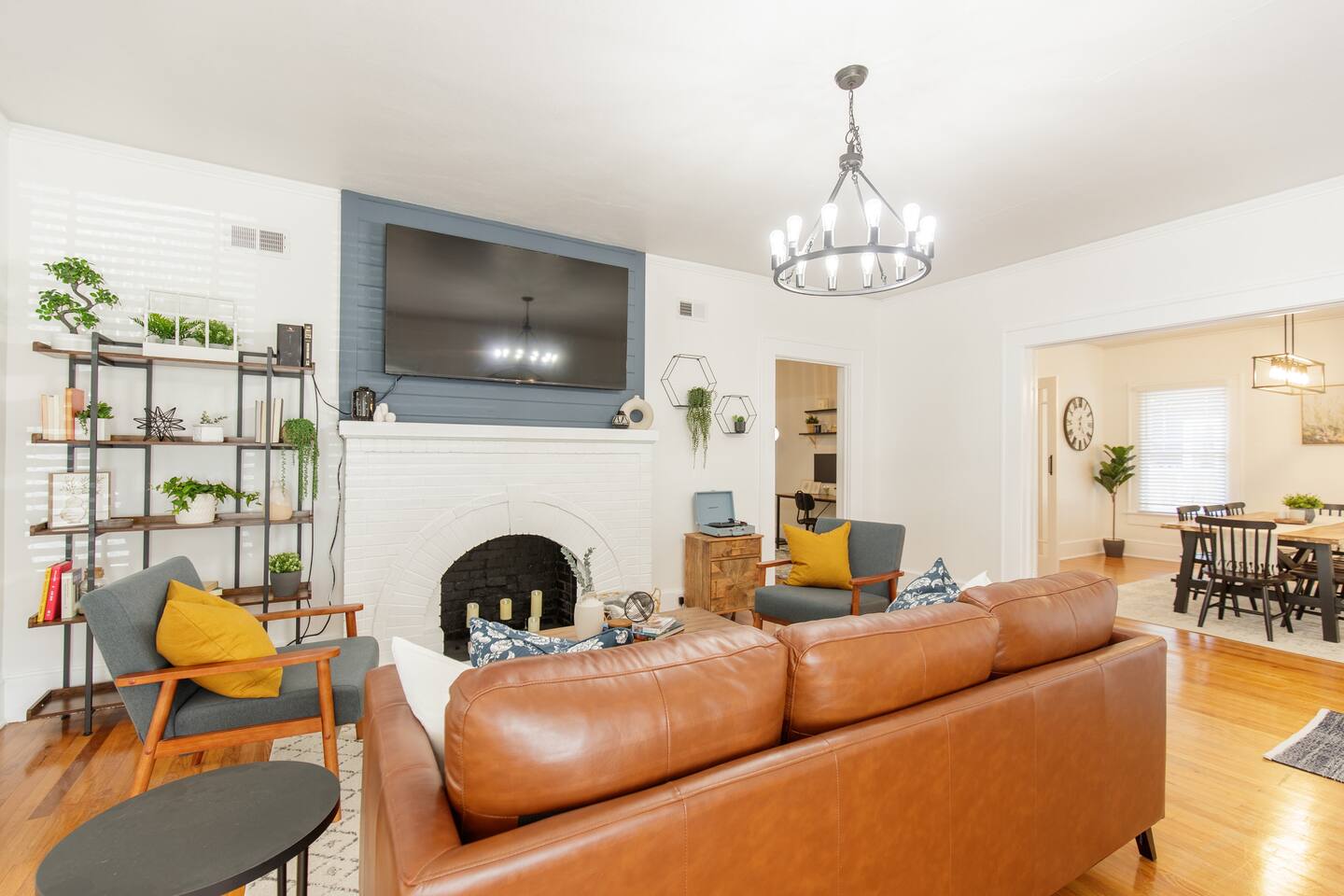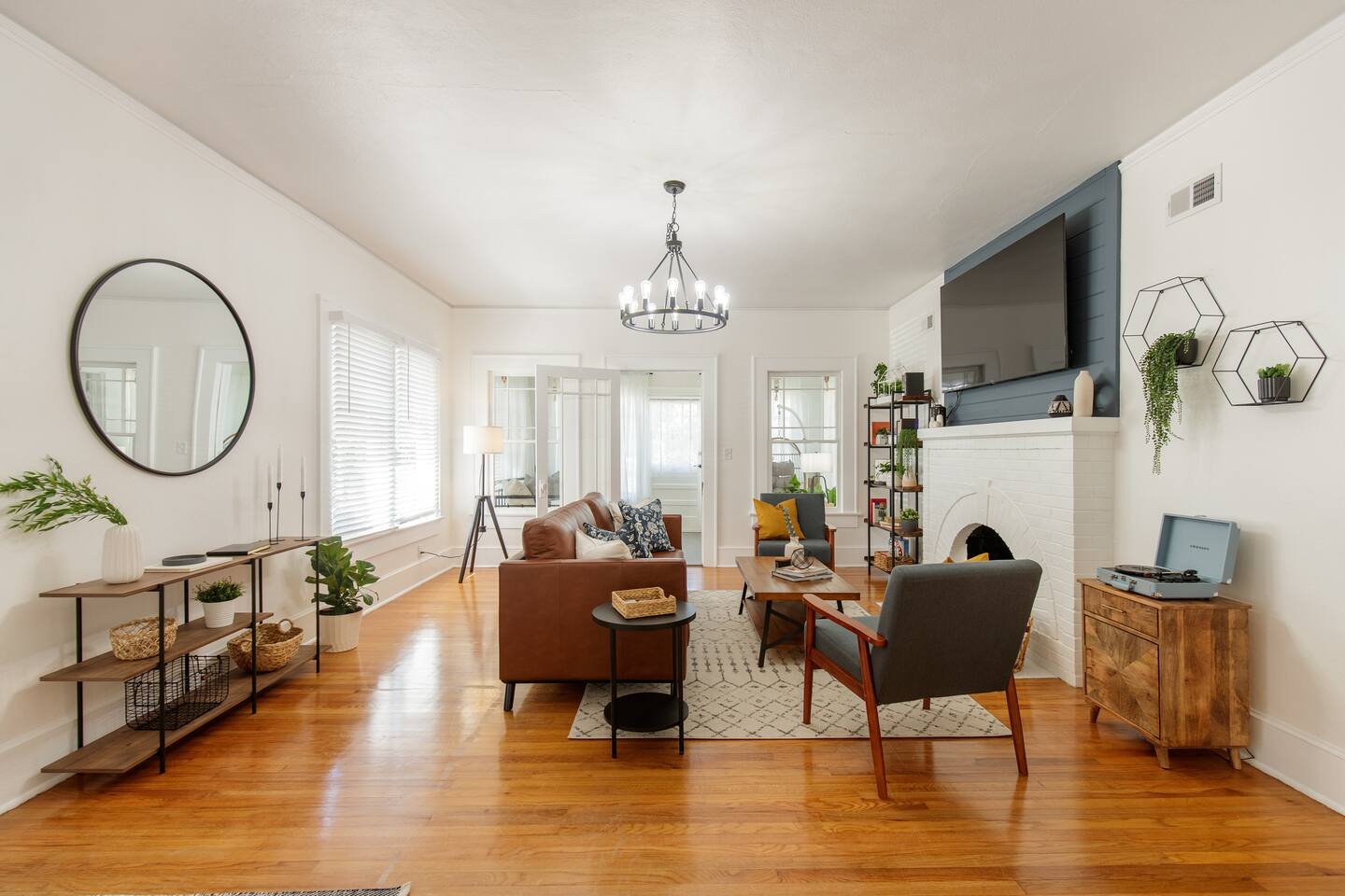 This renovated 100-year-old cottage has been carefully updated while preserving the warmth and charm that make it special. 🛏 Sleeping & Layout -King primary suite with private bath -Bedroom with two queen beds -Additional queen bedroom -Twin daybed in sunroom -Ideal for families, wedding guests & road trip groups -Most comfortable for 6–8 guests (max 10) 🛋 Living Spaces -Spacious open living & dining area -70” 4K TV for movie nights -Separate office/lounge with desk + oversized beanbag -Light-filled sunroom with hanging egg chair -Multiple cozy nooks for reading or relaxing 🍳 Kitchen & Dining -Fully stocked kitchen for home-cooked meals -Restored vintage cast iron sink -Breakfast nook with French press & drip coffee maker -Coffee, sugar & creamer provided -Dining table seating for 8 🌿 Outdoor Living -Front porch swing & rocking chairs -Fenced backyard (great for kids) -Patio dining area with umbrella -Propane grill for cookouts -Quiet historic neighborhood 📍 Location -3 minutes to VSU -3 minutes to SGMC -9 minutes to Publix -10 minutes to I-75 -19 minutes to Wild Adventures